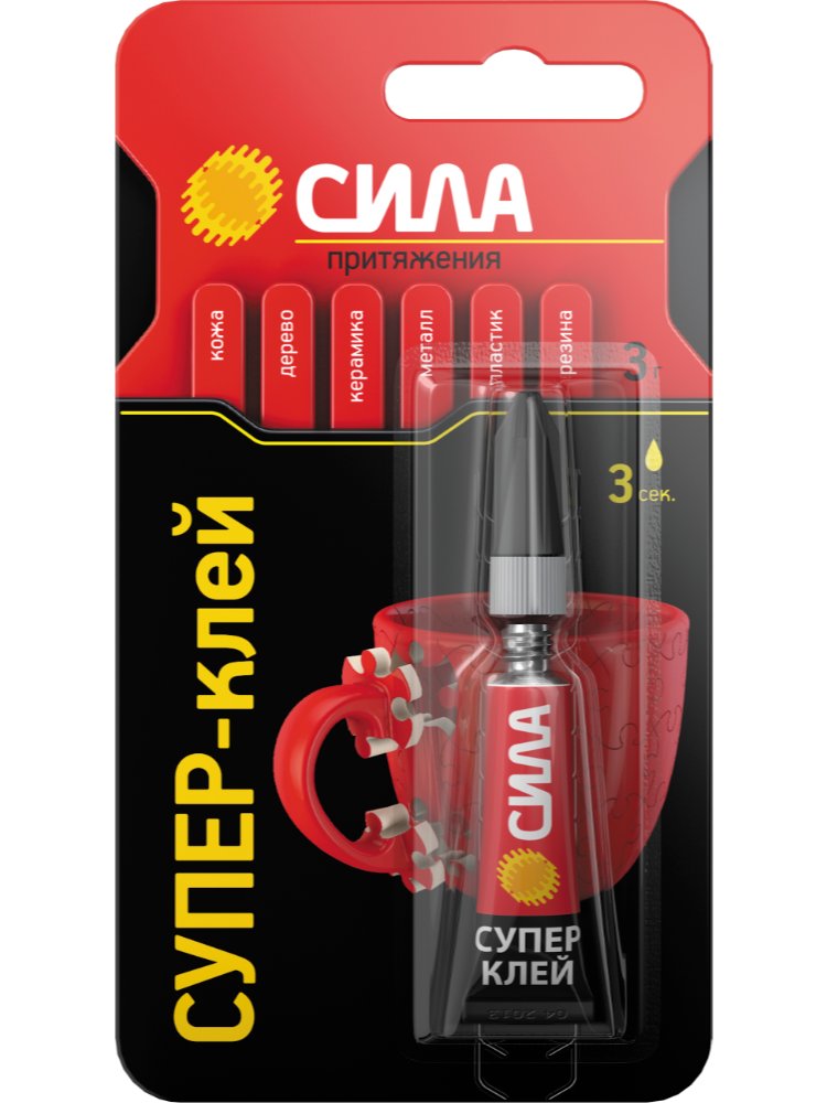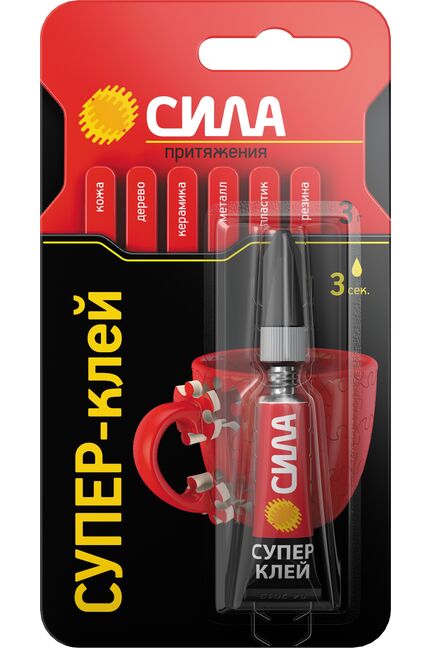 Супер-клей СИЛА, идеально подходит для быстрого и эффективного ремонта различных предметов мебели, интерьера и т.д. Накрепко схватывает дерево, резину, стекло, фарфор и пластик, при этом супер клеи экономично расходуются и высыхают за несколько секунд. * 100% цианоакрилат - высокая концентрация клеящих ингредиентов, обеспечивает крепкое, мгновенное соединение частей различных предметов.
