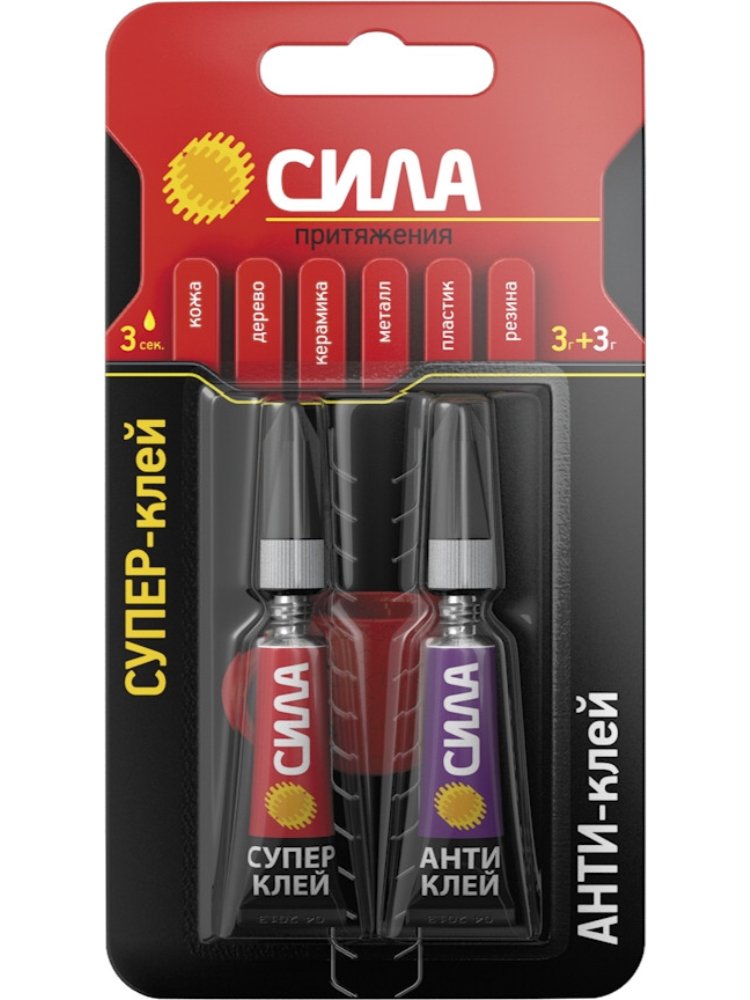Клей СИЛА-Супер Сверхпрочный 3гр + Антиклей 3гр блистер в Амурск
