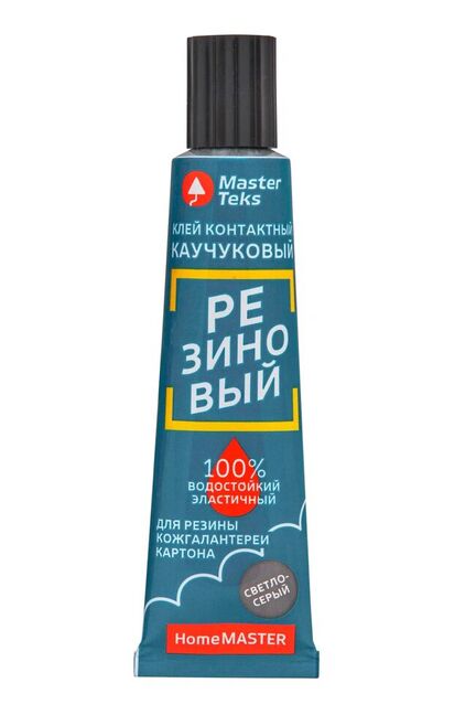 Клей контактный каучуковый MasterTeks HomeMaster резиновый Для изготовления и ремонта любых резиновых изделий и резиновой обуви, кожгалантереи, склеивания бумаги и картона, дизайнерских работ. ПРЕИМУЩЕСТВА: ● 100% водостойкий; ● Эластичный; ● Теплостойкий; ● Морозостойкий. ОБЛАСТЬ ПРИМЕНЕНИЯ: ● Предназначен для изготовления и ремонта различных резиновых изделий и резиновой обуви, кожгалантереи, склеивания бумаги и картона, дизайнерских работ. Не рекомендуется для ПП, ПЭ, тефлона. Условия применения: на очищенные поверхности равномерно нанести тонкий слой клея. Выдержать 8-10 минут и плотно прижать. Для ответственного крепления рекомендуется нанесение второго слоя клея через 5-10 минут после первого. Склеенным изделием можно пользоваться через 24 часа. Температура применения: от +10°C до +30°C. Термостойкость: от -40°C до +70°C. Быстросохнущий каучуковый клей: надежно фиксирует резину, металл, дерево и пластик. Устойчив к влаге и вибрации, легко наносится и долго служит.