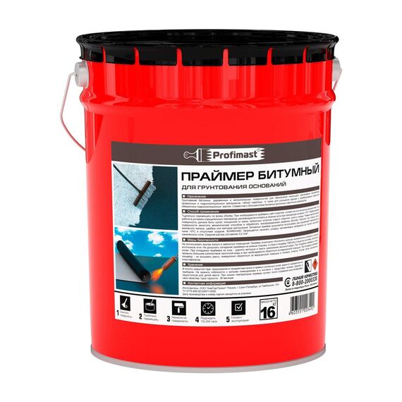 Быстросохнущий битумный праймер PROFIMAST 2л/1,8кг обеспечивает крепкую адгезию и эффективную подготовку оснований к гидроизоляции и кровле.