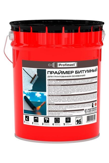 Надёжная гидроизоляция и отличная адгезия для любых оснований! Битумный праймер 2л/1,8кг PROFIMAST быстро высыхает и эффективно подготавливает поверхности к нанесению кровельных и гидроизоляционных материалов, обеспечивая долгий срок службы покрытия.