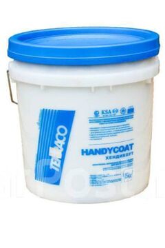 HANDYCOAT (Террако) - готовая к применению, универсальная высокоукрывистая, акриловая шпатлёвка для внутренней отделки. Это стандартный сорт для стандартных целей, подходит для любых работ кроме специализированных. Можно применять на большинстве строительных поверхностей, включая дерево. Хэндикоут специально предназначен для ремонта и восстановления внутренних поверхностей, как старых, так и новых, перед покраской. Хэндикоут заполняет стыки, тонкие трещины и т.д., обладает пластическими свойства Шпатлевка Хэндикоат Terraco 15 кг (Корея) – готовая акриловая смесь для выравнивания стен и потолков внутри помещений. Отличная адгезия, легко шлифуется.