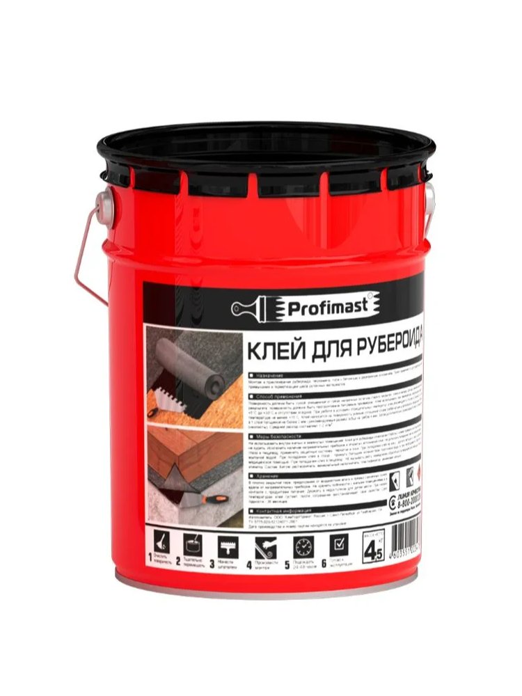 Надёжный и эффективный клей для рубероида 5л/4,5кг PROFIMAST — оптимальный выбор для устройства и ремонта кровли, гидроизоляционных работ и монтажа рулонных материалов. Благодаря высокой адгезии и эластичности, обеспечивает прочное и герметичное соединение на различных поверхностях.