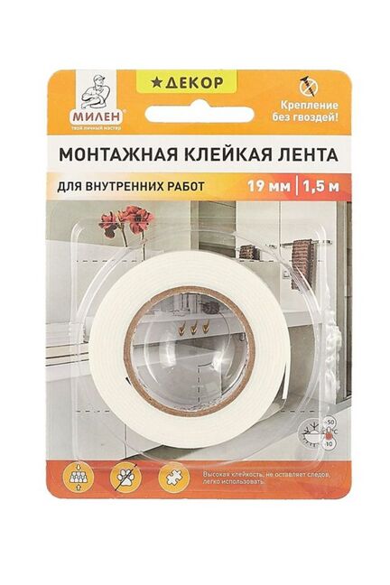 Лента клейкая 19мм*1,5м монтажная для внутренних работ Милен ДЕКОР в Амурск