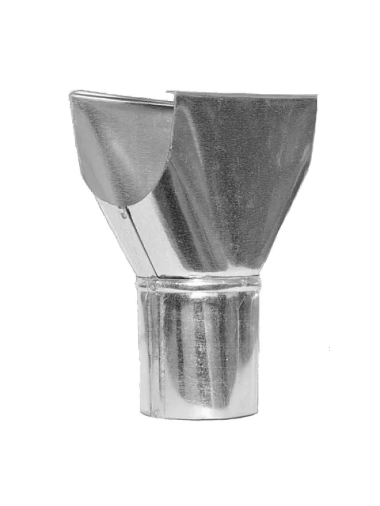 Переходный элемент, организующий слив воды из желоба в водосточную трубу. Оцинкованная сталь 0,45 мм, для герметизации соединений круглых желобов 120×150 мм, устойчив к коррозии, облегчает монтаж и повышает надежность системы.