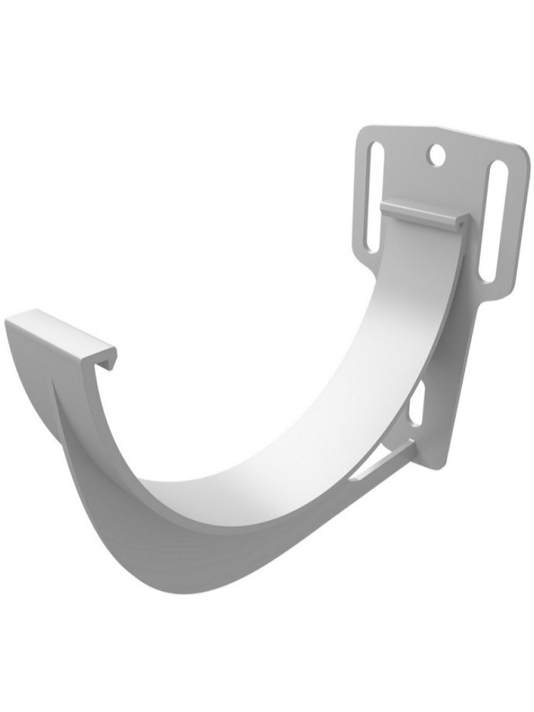 Кронштейн желоба служит для крепления желоба к торцу стропил/лобовой доске, одновременно обеспечивая дополнительную поддержку геометрических параметров желоба. При помощи крюков обеспечивается необходимый уклон для движения воды в желобе в нужном направлении. Устойчив к коррозии, не выцветает, легко устанавливается, обеспечивает надёжную фиксацию желоба диаметром 120 мм, совместим с большинством систем.