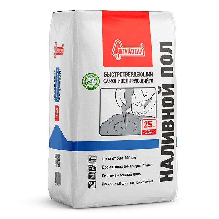 Наливной пол может использоваться и как стяжка, и для окончательного выравнивания, ходить по поверхности можно через 4 часа.<=> Подходит для выравнивания полов от 5 до 100 мм, быстро твердеет, удобен в работе, для всех типов помещений, готовность к покрытию через 7 дней.
