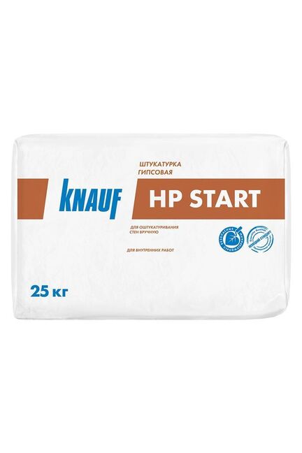 Смесь гипсовая КНАУФ-ХП Старт применяется для оштукатуривания вручную стен с бетонным или кирпичным основанием внутри помещений с нормальной влажностью, включая кухни и ванные комнаты с покрытием, обеспечивающим защиту от увлажнения. Штукатурка предназначена для внутренних работ. Гипсовая смесь для выравнивания стен и потолков, пластична, легко наносится, расход 8,5 кг/м² на 10 мм, подходит для сухих помещений