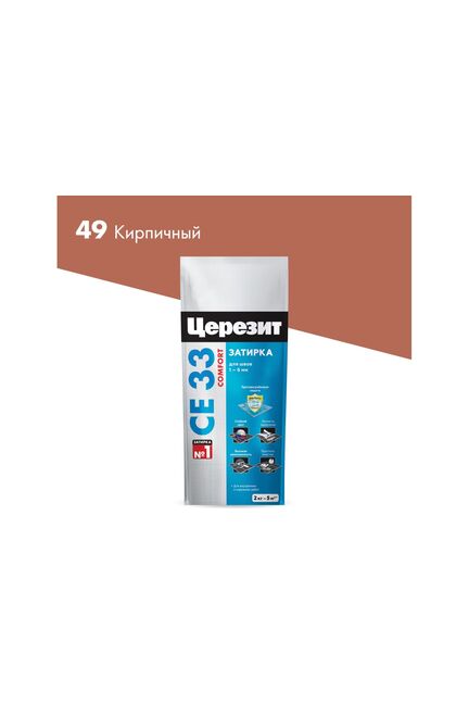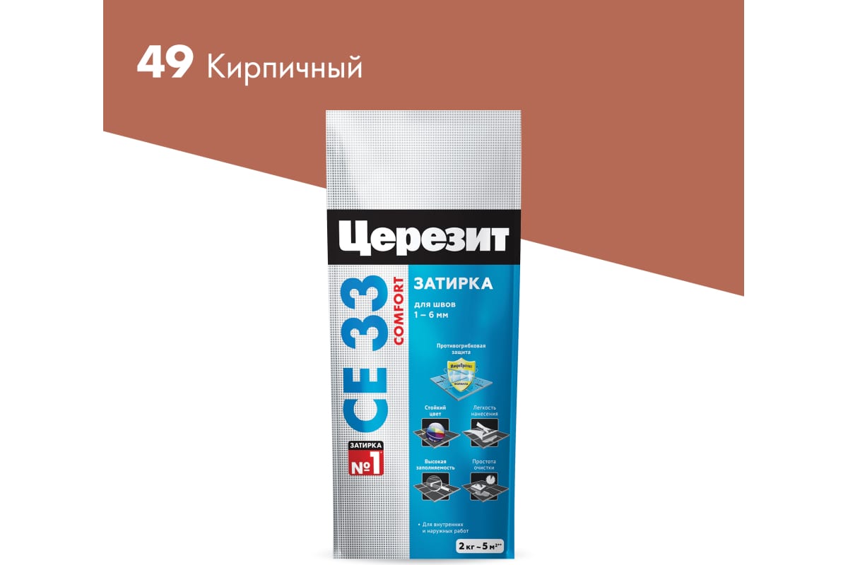 Влагостойкая затирка цвет "кирпичный 49", 2 кг. Для швов шириной 1-6 мм, устойчива к плесени, простая в применении и обеспечивает долговечный результат.