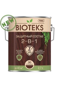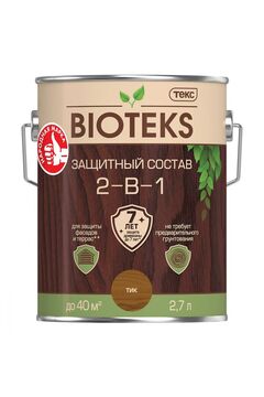 Для деревянных поверхностей из брёвен, вагонки, бруса, строганных и пиленых дощатых фасадов, термообработанной и пропитанной под давлением древесины снаружи помещений.Расход 12 - 17 м2/л по строганой и бревенчатой поверхности древесины; 7 - 9 м2/л по пилёной поверхности древесины. Разбавитель - Уайт-спирит. Время высыхания: до отлипа – 1 час, следующий слой можно наносить через – 2 часа, полное – не более 24 часов Антисептик для дерева, цвет тик, объем 2,7 л. Защищает от влаги, грибка и ультрафиолета, сохраняет структуру и увеличивает срок службы древесины.
