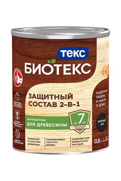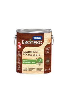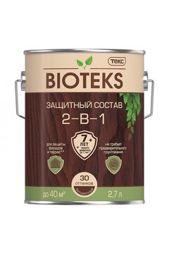 Для деревянных поверхностей из брёвен, вагонки, бруса, строганных и пиленых дощатых фасадов, термообработанной и пропитанной под давлением древесины снаружи помещений.Расход 12 - 17 м2/л по строганой и бревенчатой поверхности древесины; 7 - 9 м2/л по пилёной поверхности древесины. Разбавитель - Уайт-спирит. Время высыхания до отлипа – 1 час, следующий слой можно наносить через – 2 часа, полное – не более 24 часов Глубоко проникающий антисептик для дерева, защищает до 10 лет, оттенок махагон, объем 2,7 л, для наружных и внутренних работ.