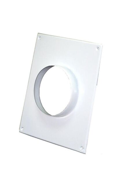 Площадка торцевая стальная: предназначена для крепления круглых воздуховодов к каналу дымохода от газового оборудования различных типов; настенный монтаж при помощи шурупов; материал: тонколистная сталь, покрытая полимерной эмалью; размеры: высота 23,6см, ширина 19,6см, раст.между отверстиями креплений: вертик.21,5см, горизонт.17,5см,Φ внутр.отверстия 15см, цвет: белый; Воздуховод крепится к фланцу площадки хомутом!