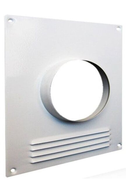 Площадка торцевая пластиковая с решеткой: предназначена для оформления вентиляционных отверстий и присоединения воздуховодов; настенный монтаж при помощи шурупов; материал: полистирол; размеры: высота 24см, ширина 20,5см, раст.между отверстиями креплений: вертик.22,4см, горизонт.18,4см,Φ внутр.отверстия 10см, цвет: белый; Площадка 180×240 с решёткой и фланцем d=100 для вентиляции, надёжно защищает от мусора и влаги, устойчива к коррозии, подходит для фасадов и стен.