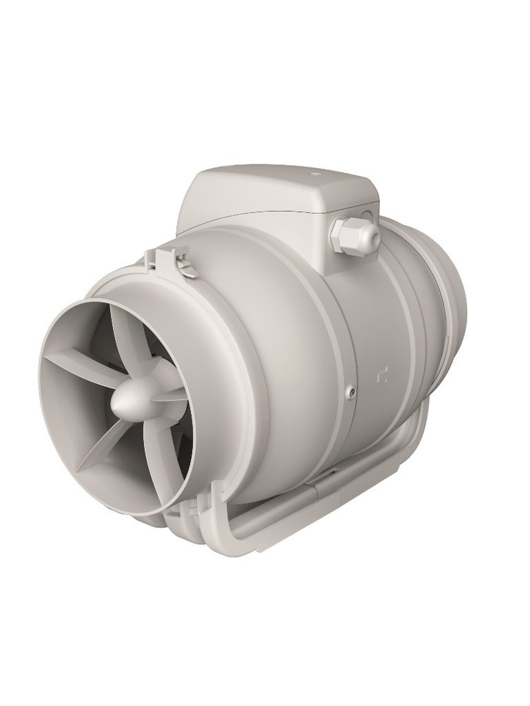 Канальные осевые вентиляторы смешанного типа предназначены для приточно-вытяжных систем вентиляции промышленных, общественных и жилых зданий. Съемный центральный блок с двигателем, крыльчаткой и клеммной коробкой крепится к патрубкам хомутами. Это существенно упрощает обслуживание. Вентиляторы имеют две скорости, которые переключаются путем подключения проводов к колодкам, расположенным в клеммной коробке. Возможна установка кнопки (в комплекте). Асимметричная форма клеммной коробки облегчает подключение сетевого провода. Двухскоростной однофазный двигатель на шарикоподшипниках с длительным сроком службы. Имеет встроенную тепловую защиту с автоматическим перезапуском. Вентиляторы подходят для горизонтального и вертикального монтажа. Крепление к месту монтажа осуществляется при помощи саморезов. Двухскоростной, энергоэффективный вентилятор D100 ERA PRO для каналов 100 мм, подходит для вентиляции санузлов, кухонь, офисов и кладовых.