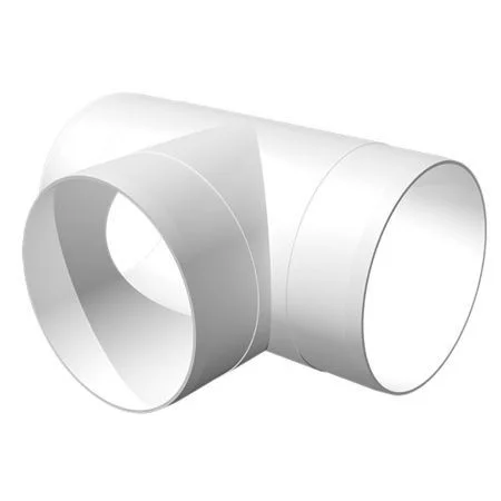 Тройник круглый Т-образный: применяется для разветвления вентиляционной сети; монтируется с воздуховодами; ширина 244мм, высота 203мм, Φ160мм Соединяет трубы D160 мм под 90° для вентиляции и канализации, герметичен, прост в монтаже, из прочного ПВХ, устойчив к влаге и коррозии.