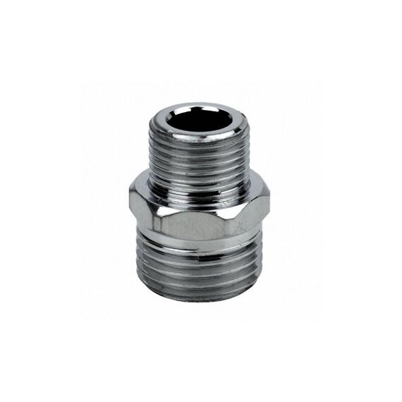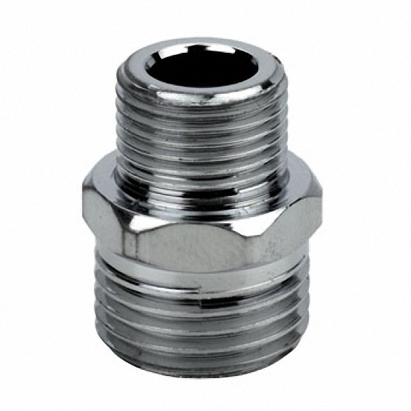 Латунный никелированный переходник 15х10 мм для труб, стойкий к коррозии, надёжный, герметичный, легко монтируется для отопления и водоснабжения.