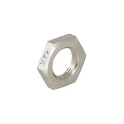 Контргайка 25 мм из никелированной латуни с внутренней резьбой, устойчива к коррозии и предназначена для надежного крепления трубопроводной арматуры.