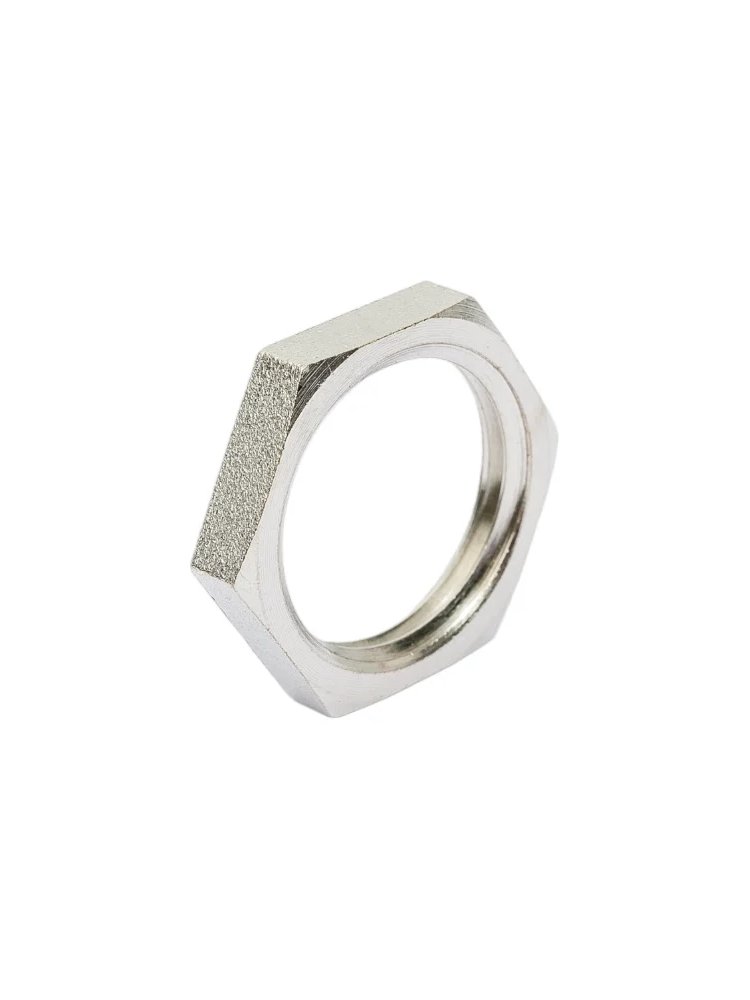 Удобное и надежное решение для обустройства инженерных сетей в доме и на производстве! Контргайка из латуни с никелированным покрытием обеспечивает герметичное и прочное соединение труб и фитингов с резьбой 1/2 дюйма (Ду 15), предотвращая протечки и гарантируя долговечность монтажа.