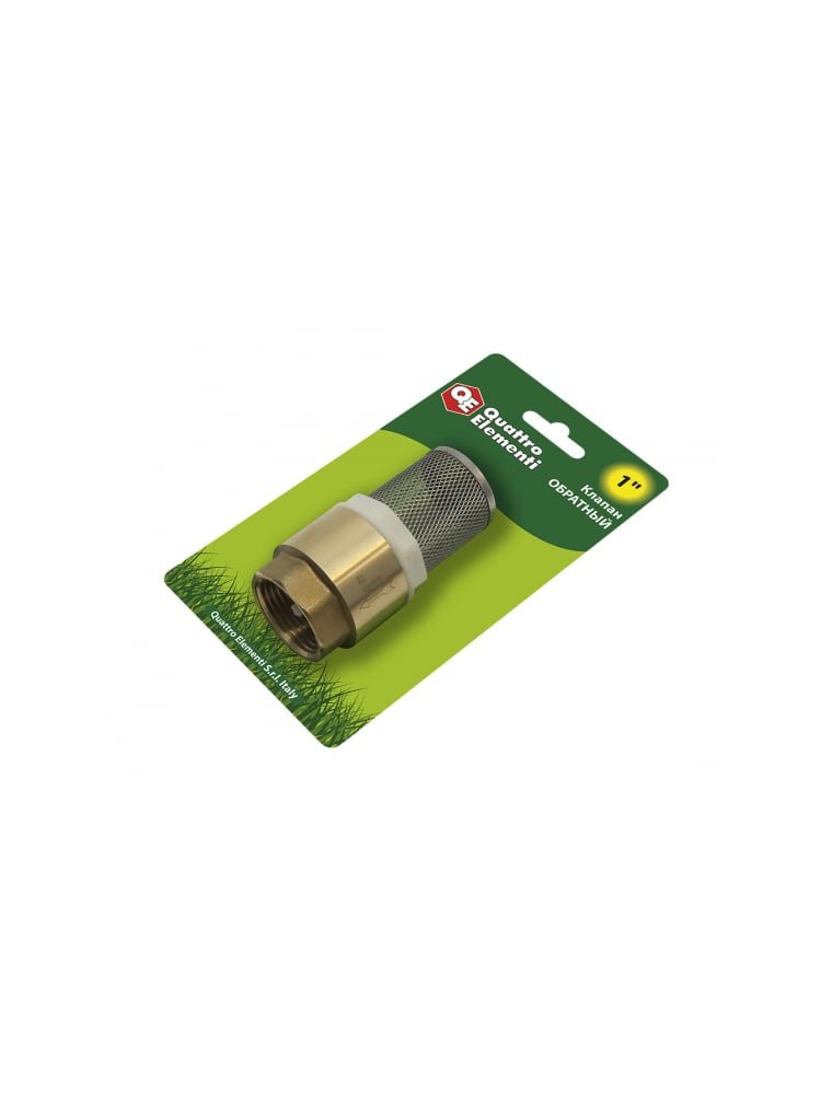 Обратный клапан QUATTRO ELEMENTI используют с насосами и насосными станциями. Он предотвращает незапланированный слив воды из системы водоснабжения, например, при остановке работы насоса. Обеспечивает обратное запирание и фильтрацию в системах водоснабжения. Латунь, 1", несъемная сетка, устойчивость к коррозии.