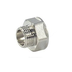 Переходник для соединения труб разных диаметров, выполнен из никелированной латуни, выдерживает давление до 16 бар, устойчив к коррозии.