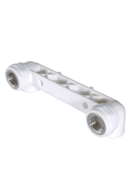 Планка с PPR корпусом и латунными водорозетками 20х1/2" для крепёжного и надёжного подключения смесителей на холодную и горячую воду.