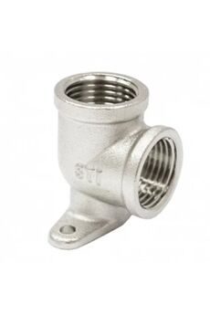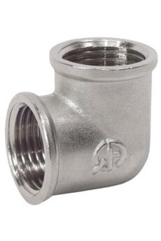 Прочный уголок для труб 25 мм с внутренней резьбой, никелированная латунь, устойчива к коррозии, выдерживает до 16 бар и температуру до 95°C.