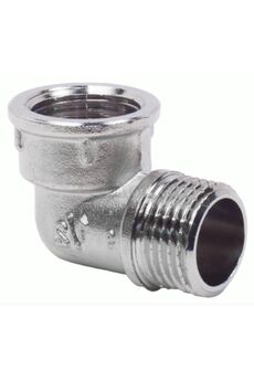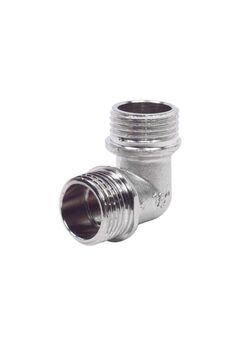 Латунный, никелированный уголок Ду 15 ВР-НР для монтажа труб, обеспечивает герметичность и антикоррозийную защиту, подходит для воды и отопления.
