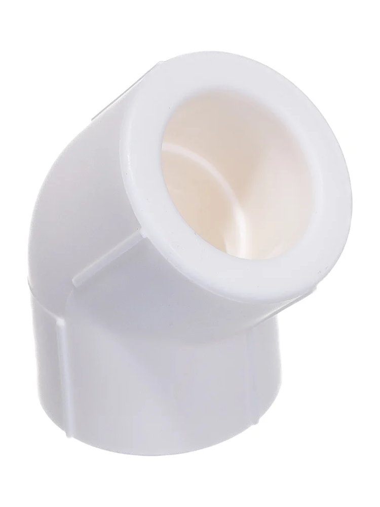 Угольник 45° 25 мм из PPR для профессионального монтажа систем отопления и водоснабжения, обеспечивает герметичность и долговечность соединений.