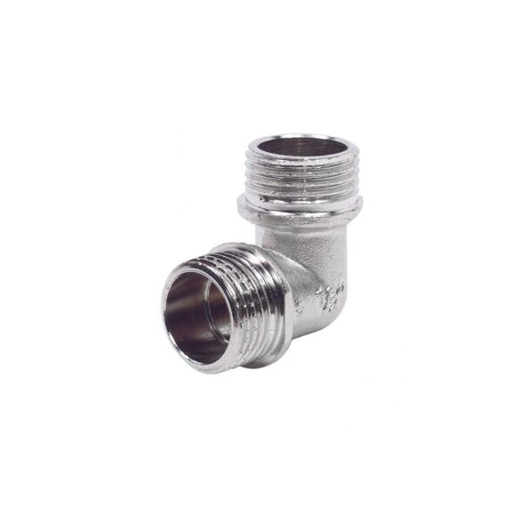 Латунный никелированный уголок Ду 20 для прочных и герметичных соединений труб в системах водоснабжения и отопления, прост в монтаже.