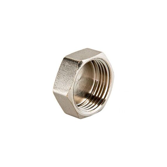 Латунная никелированная заглушка с внутренней резьбой Ду 25 для надежного герметичного перекрытия труб в системах воды и отопления.