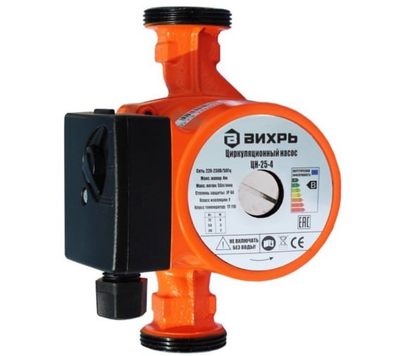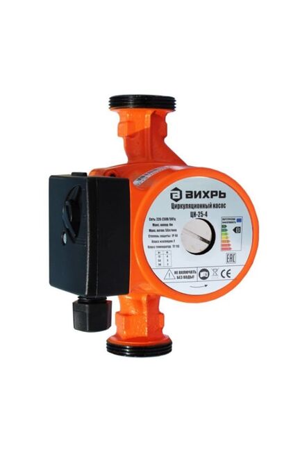Циркуляционный насос Вихрь ЦН-25-4 - аппарат для работы в системах отопления, обеспечения циркуляции воды. Переключатель позволяет выбрать оптимальный режим работы. Охлаждение подшипников осуществляется перекачиваемой водой. Насос отличается бесшумностью в работе, простотой монтажа и значительным сроком эксплуатации. Циркуляционный насос Вихрь ЦН-25-4 с мощностью 72 Вт, напором до 4 м и производительностью 40 л/мин. Надежный чугунный корпус, 3 режима работы.