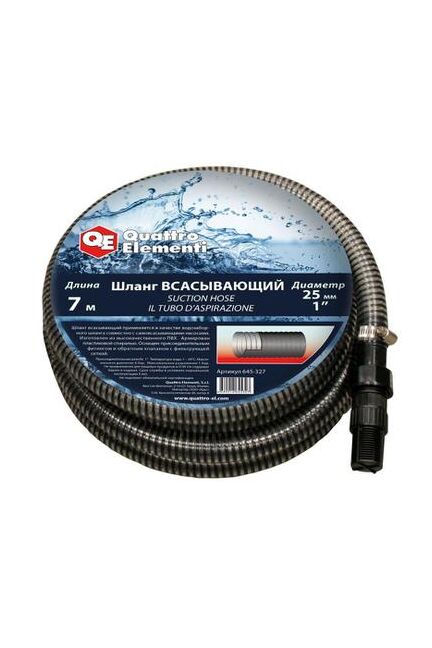 Шланг садовый всасывающий Quattro Elementi используется совместно с садовыми поверхностными насосами и автоматическими насосными станциями для водозабора. Шланг изготовлен из высококачественного ПВХ. Имеет спиральное армирование стальной проволокой. Оснащен обратным клапаном и резьбовым фитингом 1". Гибкий шланг 4 м с обратным клапаном для насосов, предотвращает обратный поток воды. Диаметр 1". Идеален для водозабора на участке или стройке.