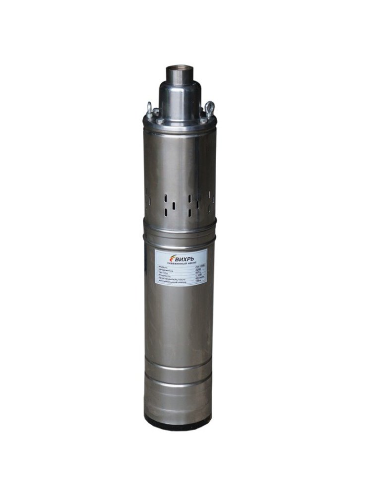 Скважинный насос Вихрь СН-100B - это мощный агрегат для подачи воды в здания, полива и орошения садов и клумб. Рекомендуется использовать для перекачки чистой воды с загрязнением не более 40г/м.куб. Для увеличения срока службы в качестве материала корпуса  используется нержавеющая сталь, а насосная часть сделана из хрома. Насос оснащен длинным шнуром питания (20 м). Экономичный насос 100 Вт для скважин глубиной до 40 м, производительность до 1,8 м³/ч, простая установка и защита от перегрева.