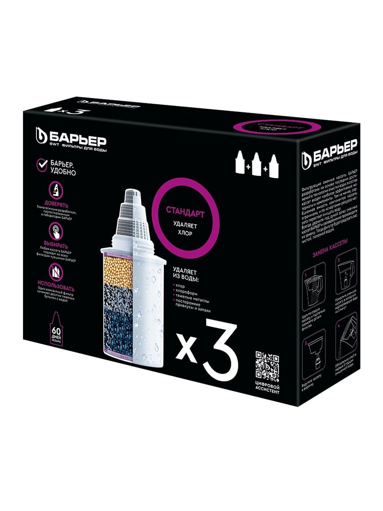 - Экономичная упаковка — три картриджа в комплекте обеспечивают длительную очистку
