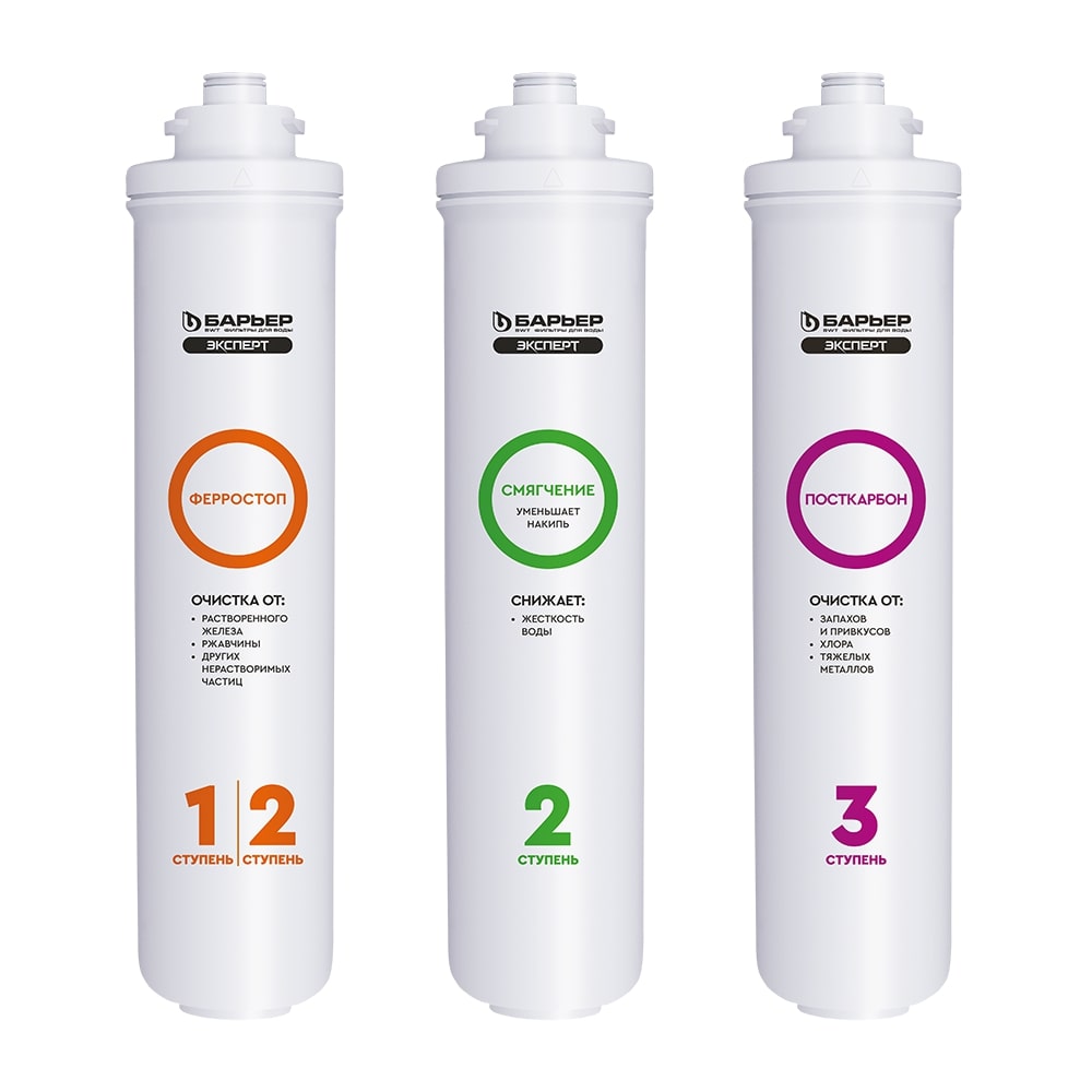 Предназначен для эффективной комплексной очистки воды с повышенным содержанием солей жесткости и железа. Уникальная технология Ferrostop дает превосходный результат очистки от железа при высоких концентрациях: до 5 ПДК. Благодаря технологии ByPass жесткость воды после фильтрации имеет оптимальный уровень для здоровья. Гарантия от протечек: все соединения в системе выполнены с использованием Push-In фитингов, которые обеспечивают легкость подключения и 100% гарантию от протечек. Уникальная система SmartLock: самозапирающаяся система предотвращает откручивание фильтроэлемента, когда фильтр находится под давлением. Шарнирная система крепления фильтроэлементов позволяет устанавливать его под любым доступным пользователю углом. Комплектация: 1я ступень "Ферростоп" 1 шт; 2я ступень "Смягчение" 1 шт; 3я ступень "Посткарбон" 1 шт. Эффективная трехступенчатая фильтрация воды — защита от хлора и металлов, простой монтаж, длительный ресурс картриджей, высокая производительность.