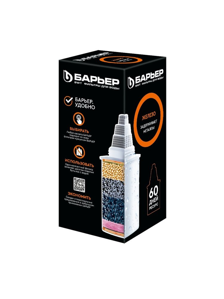 Предназначена для очистки воды с повышенным содержанием железа. Кокосовый активированный уголь очищает от активного хлора, органических загрязнений и т.д. Обработка активированного угля серебром предотвращает размножения бактерий внутри фильтра. Удаляет железо, очищает воду от хлора и примесей, совместим с Барьер-7, ресурс до 350 литров. Быстро улучшает вкус и качество питьевой воды.