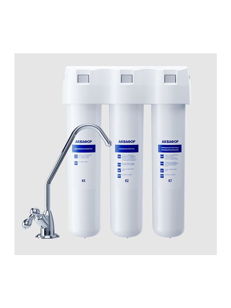 Компактный фильтр обеспечивает чистую питьевую воду без запаха и примесей, легко монтируется под мойкой и экономит место на кухне.