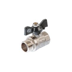 Шаровой кран Ду 15 ВР-НР, латунь-никель, бабочка, до 40 бар, для холодной и горячей воды, антикоррозийное покрытие, компактный монтаж.