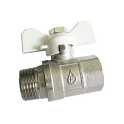 Полнопроходной ремонтопригодный шаровой кран с увеличенным ресурсом. Корпус – латунный, никелированный. Оснащен ручкой типа «бабочка» с утолщенной стенкой из алюминиевого сплава и эпоксидной покраской. Резьба присоединений – внутренняя/наружная Шаровой кран 3/4" ВР-НР, латунь, никелированный, PN40, с ручкой «бабочка»; для воды и отопления, рабочее давление до 40 бар, надёжность и долговечность.